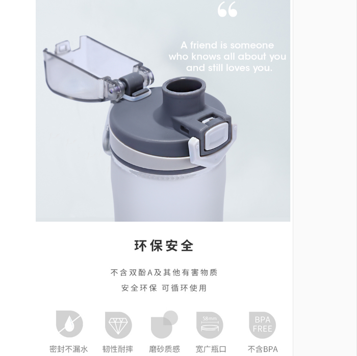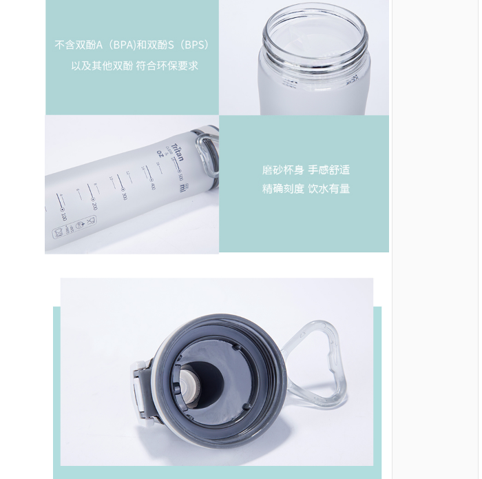 產(chǎn)品特點(diǎn):PC/PP材質(zhì)健康更放心,密封不漏水,磨砂質(zhì)感,寬口瓶口不含BPA